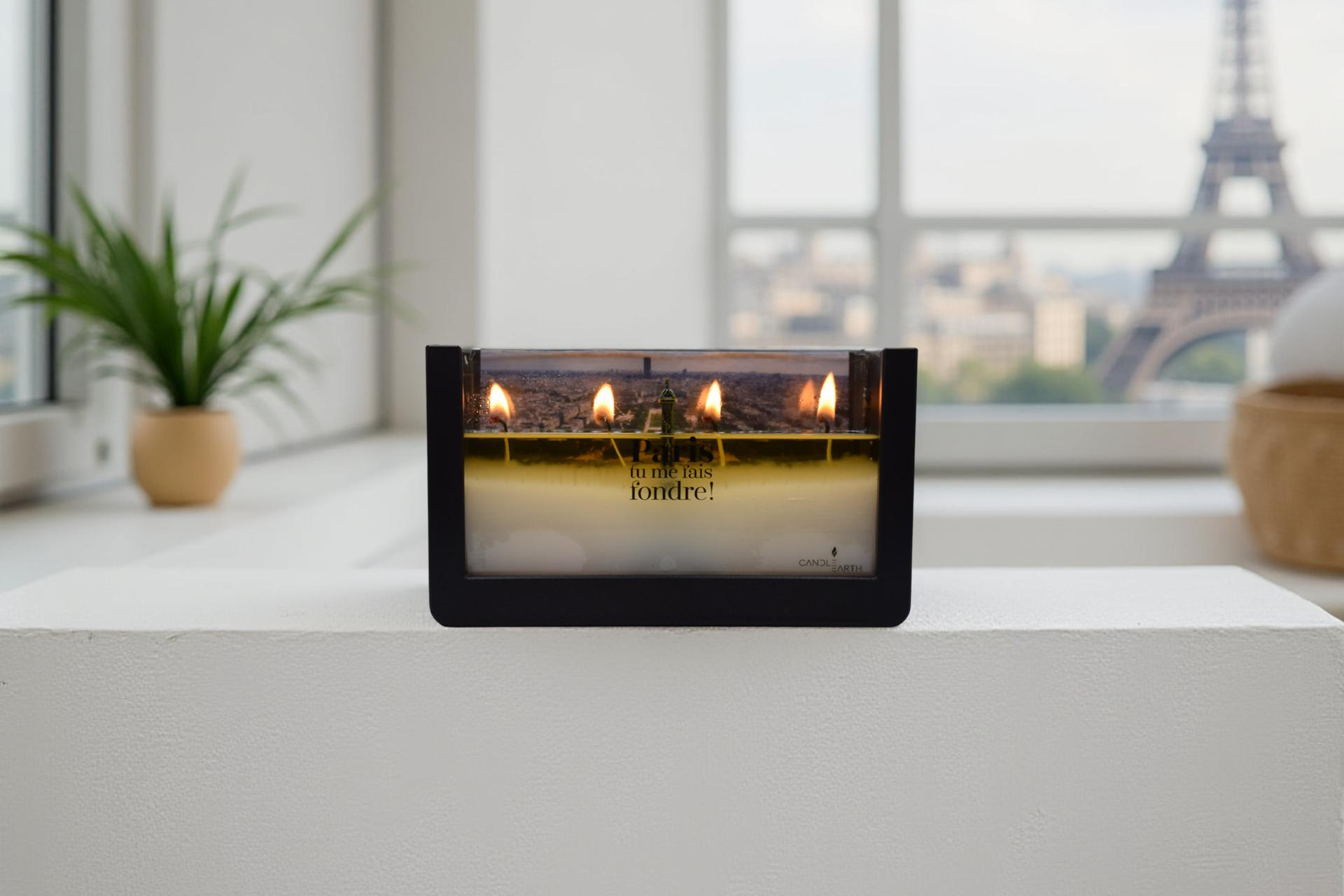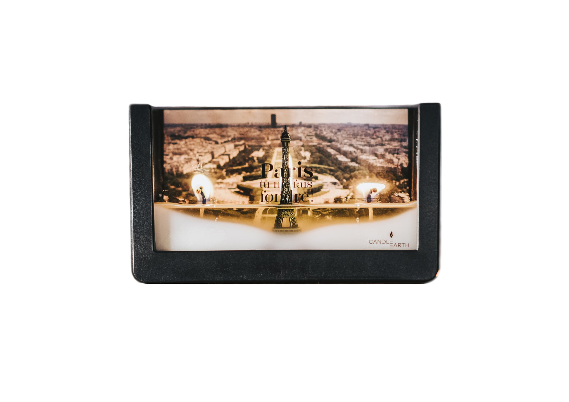 Candlearth réinvente la bougie parfumée en la transformant en un objet décoratif chargé d’émotion. Notre édition emblématique dédiée à Paris propose une expérience sensorielle complète : sur mesure que la cire fond, une image iconique de la capitale et une miniature en métal de la Tour Eiffel se dévoilent. Ce concept unique allié design, parfum et souvenir, idéal pour les clients en quête de cadeaux originaux et d'objets à forte dimension symbolique. Fabriquée en Europe, cette bougie parfumée, en cire végétalienne (au beurre de karité) de 850 g, offre plus de 75 heures de combustion.