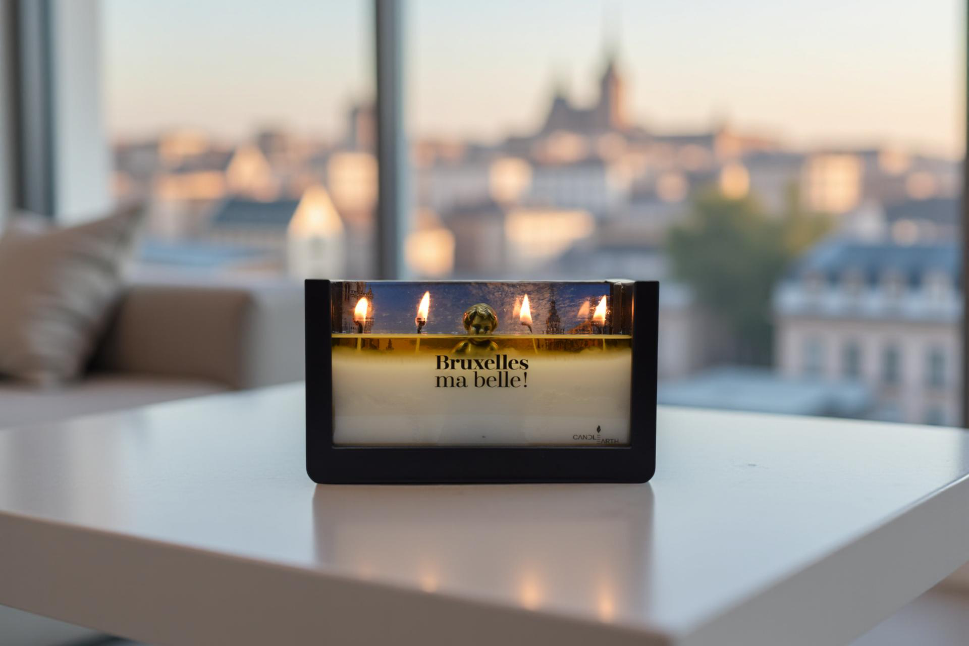 Candlearth réinvente la bougie parfumée en la transformant en un objet décoratif chargé d’émotion. Notre édition emblématique dédiée à Bruxelles propose une expérience sensorielle complète : sur mesure que la cire fond, une image iconique de la capitale et une miniature en métal de Manneken Pis se dévoilent.