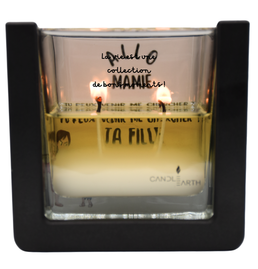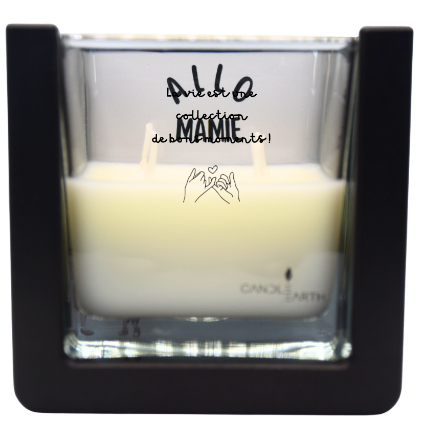 - Cire : 235 g de cire végane parfumée, composée essentiellement de beurre de karité, négatif en carbone