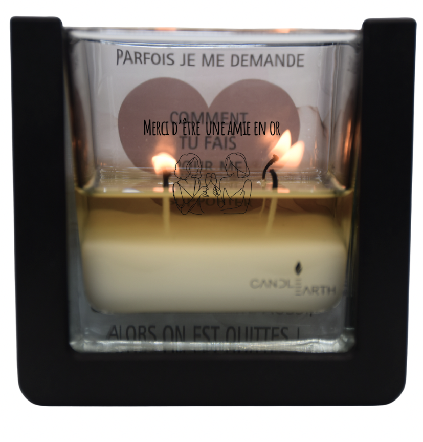 • Cire : 235 g de cire végane  parfumée, composée essentiellement de beurre de karité, négatif en carbone