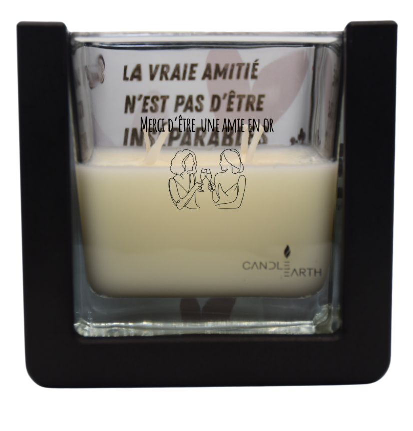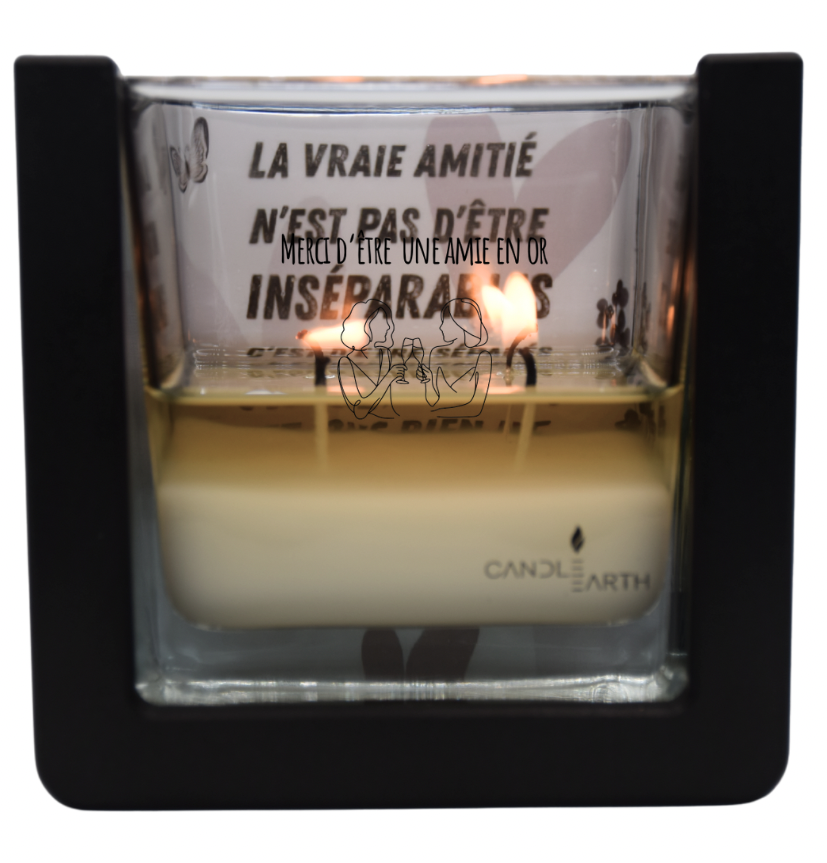 - Cire : 235 g de cire végane parfumée, composée essentiellement de beurre de karité, négatif en carbone