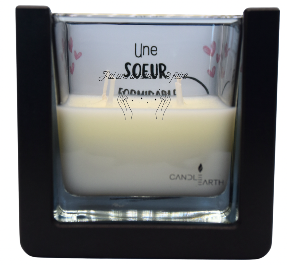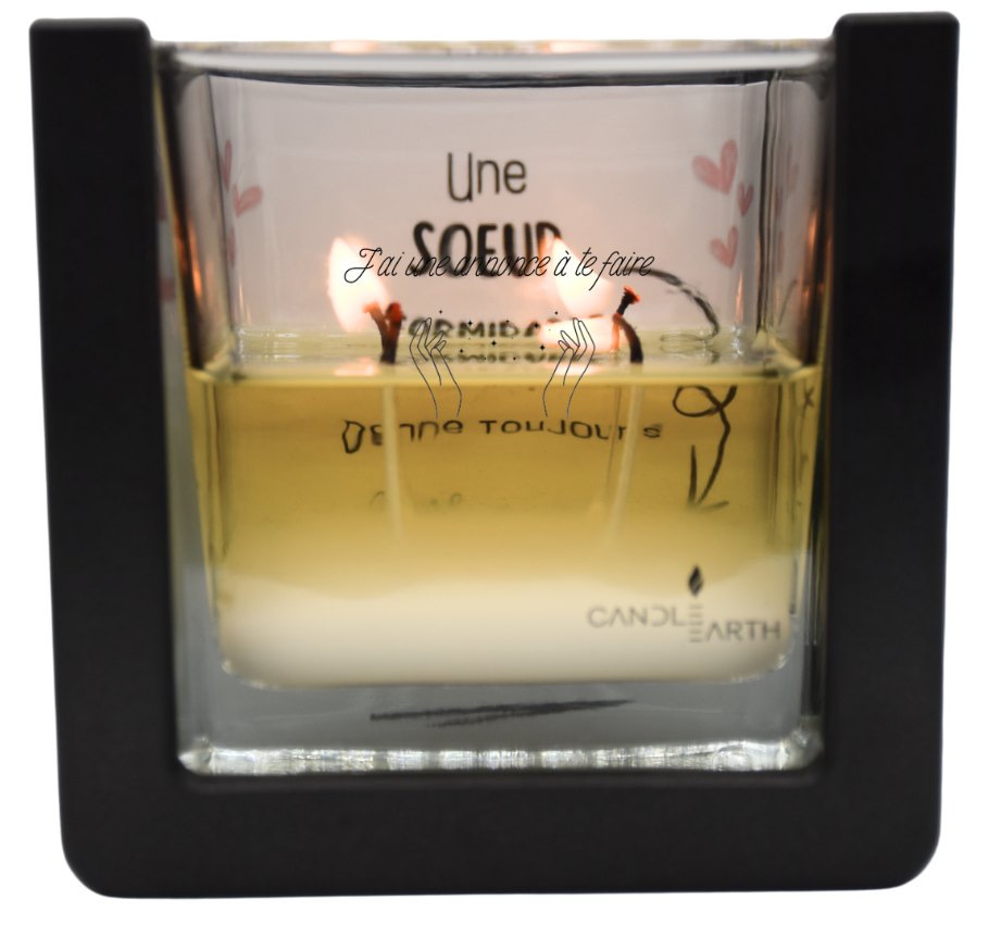 - Cire : 235 g de cire végane parfumée, composée essentiellement de beurre de karité, négatif en carbone
