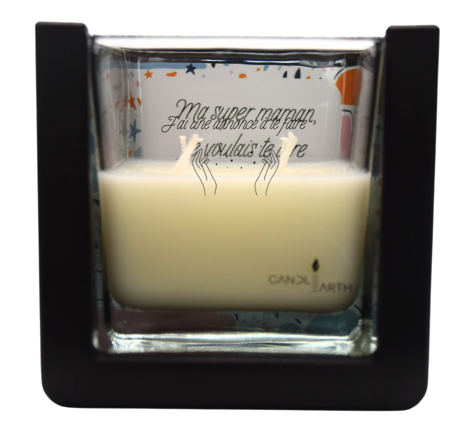 - Cire : 235 g de cire végane parfumée, composée essentiellement de beurre de karité, négatif en carbone